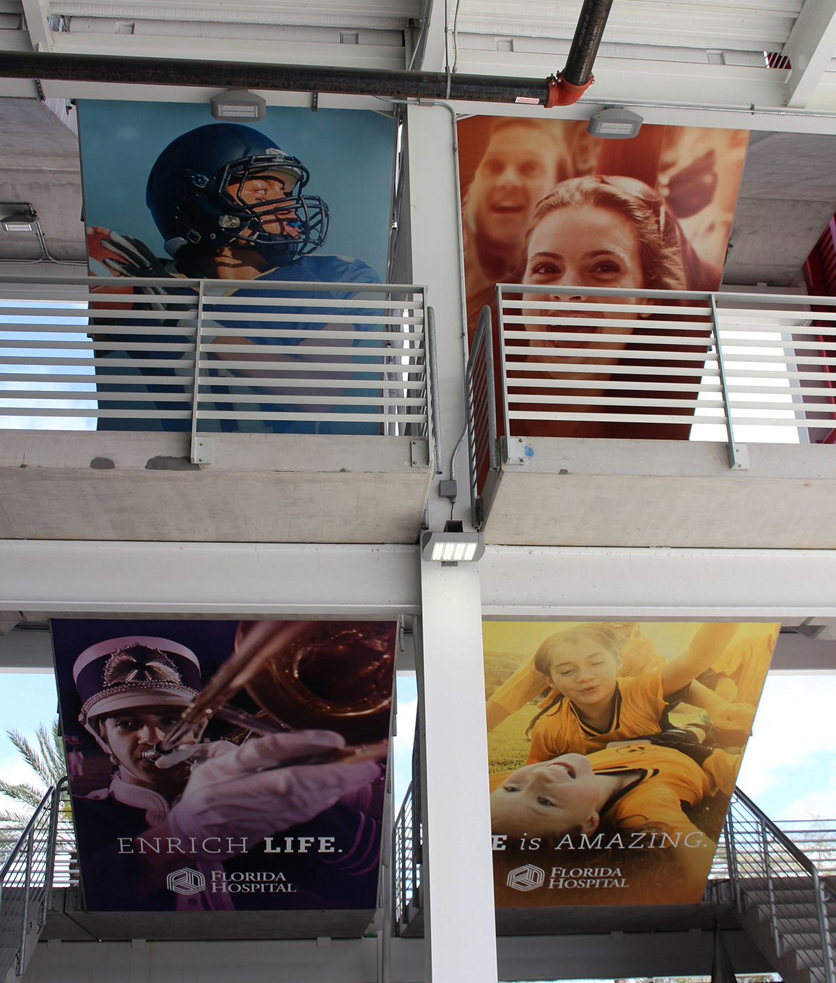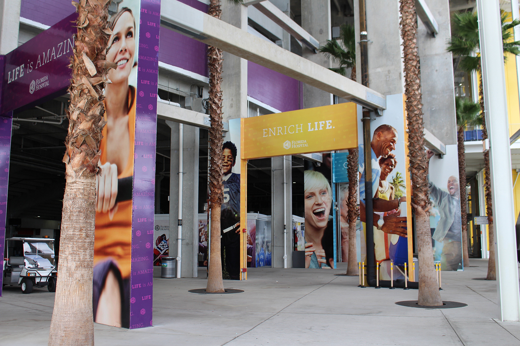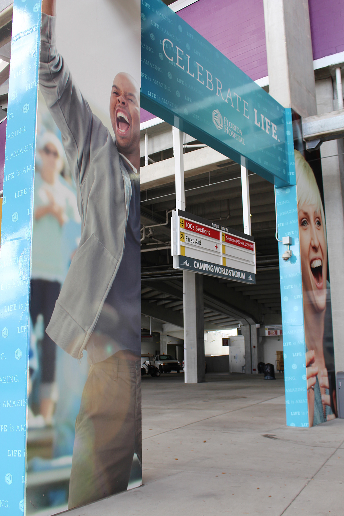 Worked closely with fellow senior designer Kirk Rhodes and David Magagni of Triangle Reprographics to brand the multiple floors of the Florida Citrus Bowl (now Camping World Stadium) with Florida Hospital's "Life is Amazing" campaign graphics.